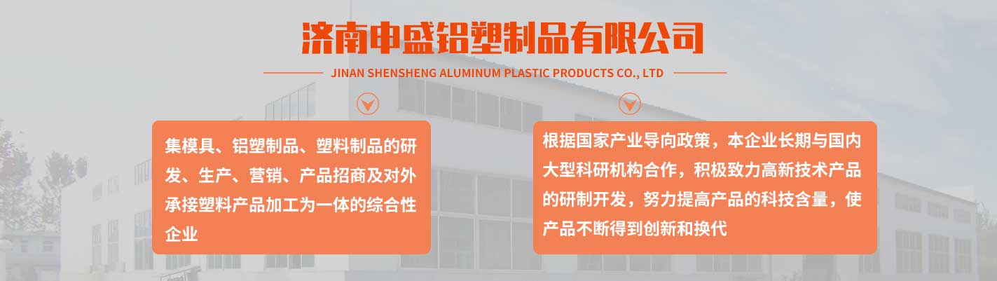濟南申盛鋁塑制品有限公司,座落在濟南市長清區(qū)工業(yè)園,占地十余畝。是一家集模具、鋁塑制品、塑料制品的研發(fā)、生產(chǎn)加工、營銷、產(chǎn)品招商、對外承接塑料產(chǎn)品加工為一體的綜合性企業(yè)。根據(jù)國家產(chǎn)業(yè)導向政策,本企業(yè)長期與國內(nèi)大型科研機構合作,積極致力高新技術產(chǎn)品的研制開發(fā),努力提高產(chǎn)品的科技含量,使產(chǎn)品不斷得到創(chuàng)新和更新?lián)Q代,市場銷量走在同行業(yè)的前列。